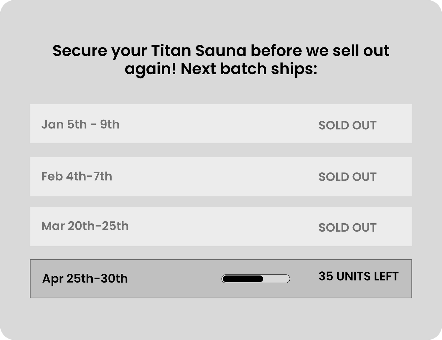 Each unit is 100% handcrafted and currently offered on a pre-order, first-come, first-served basis. Once your order is placed, the typical lead time is 30 days before shipping. We’ll keep you updated every step of the way to ensure a smooth and timely delivery.